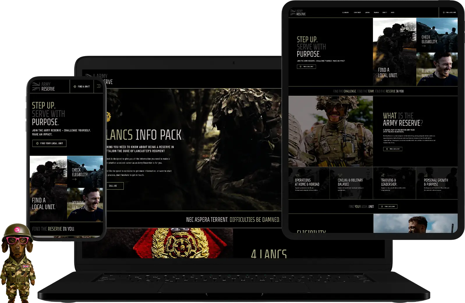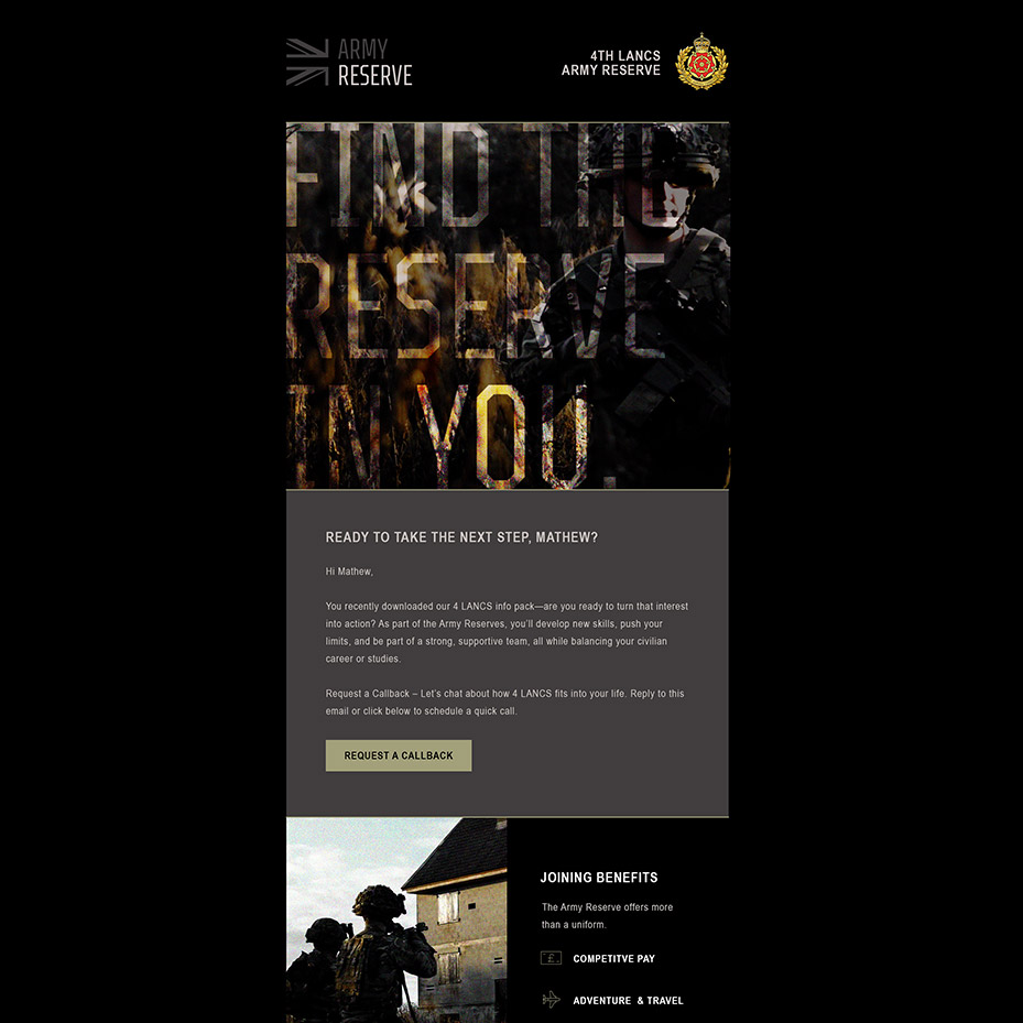 Brand, design and digital work produced alongside Invoke Media, supporting concept development for an Army Reserve recruitment project.