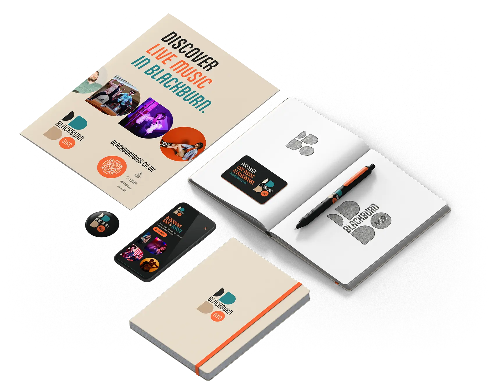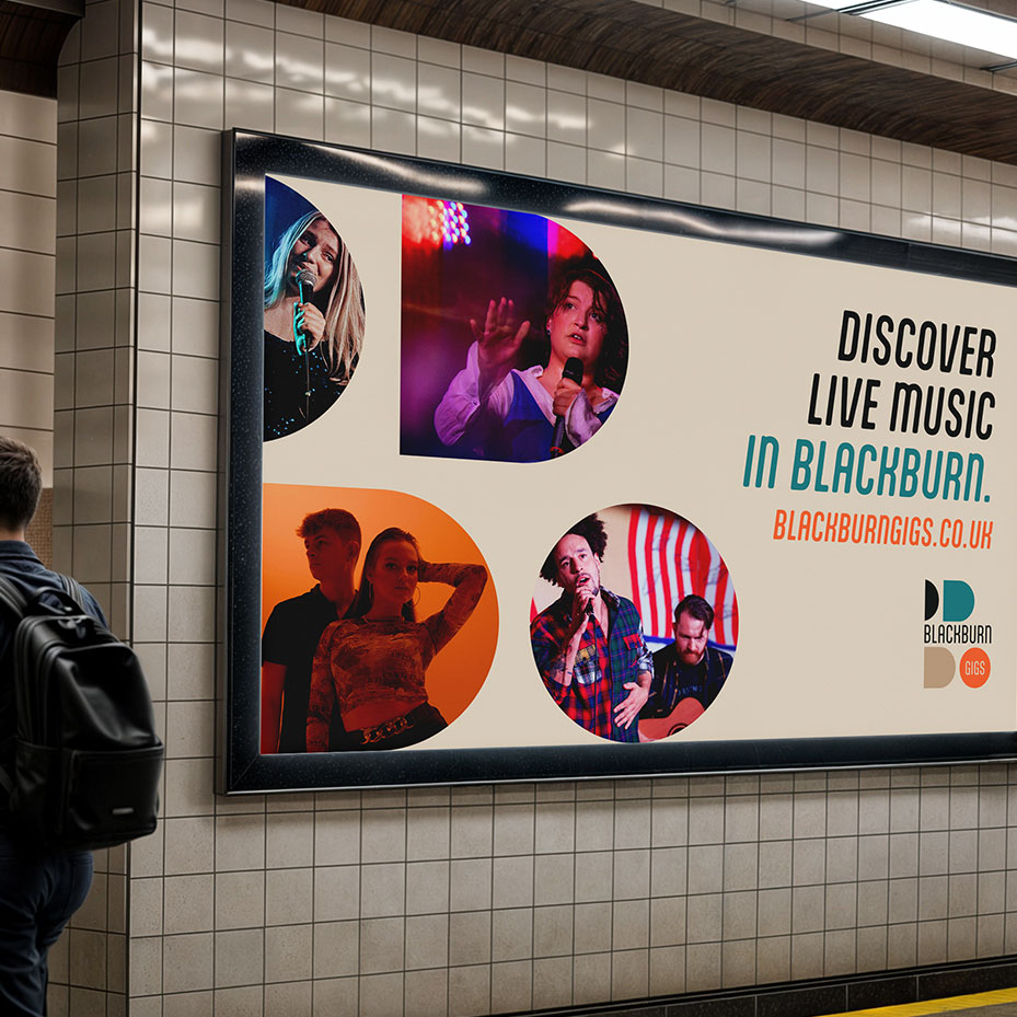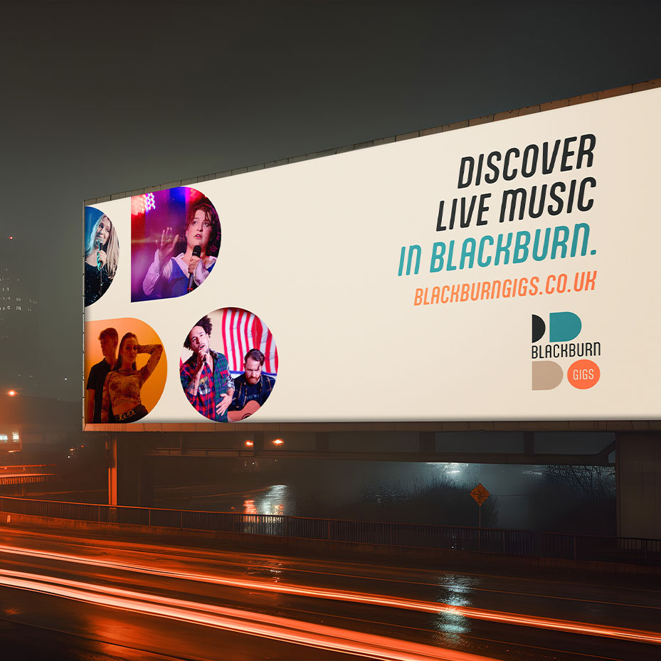 From brand identity to print & digital advertising and a custom events website, Blackburn Gigs connects people with live music across the town.