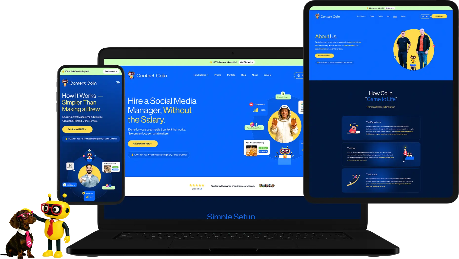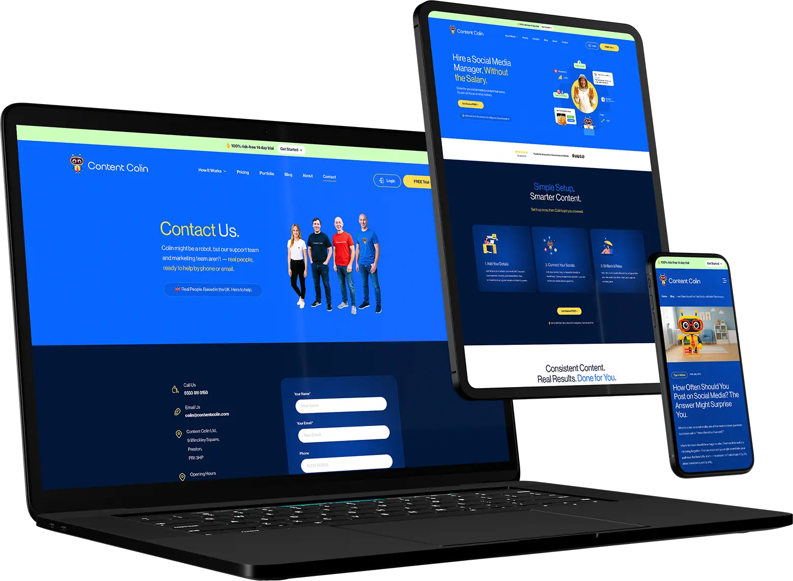 A playful yet polished brand and website for Content Colin β bringing AI-powered social media management to life without feeling cold, complex or intimidating. Smart tech, made approachable.