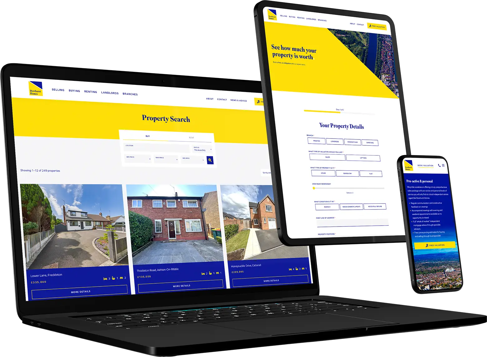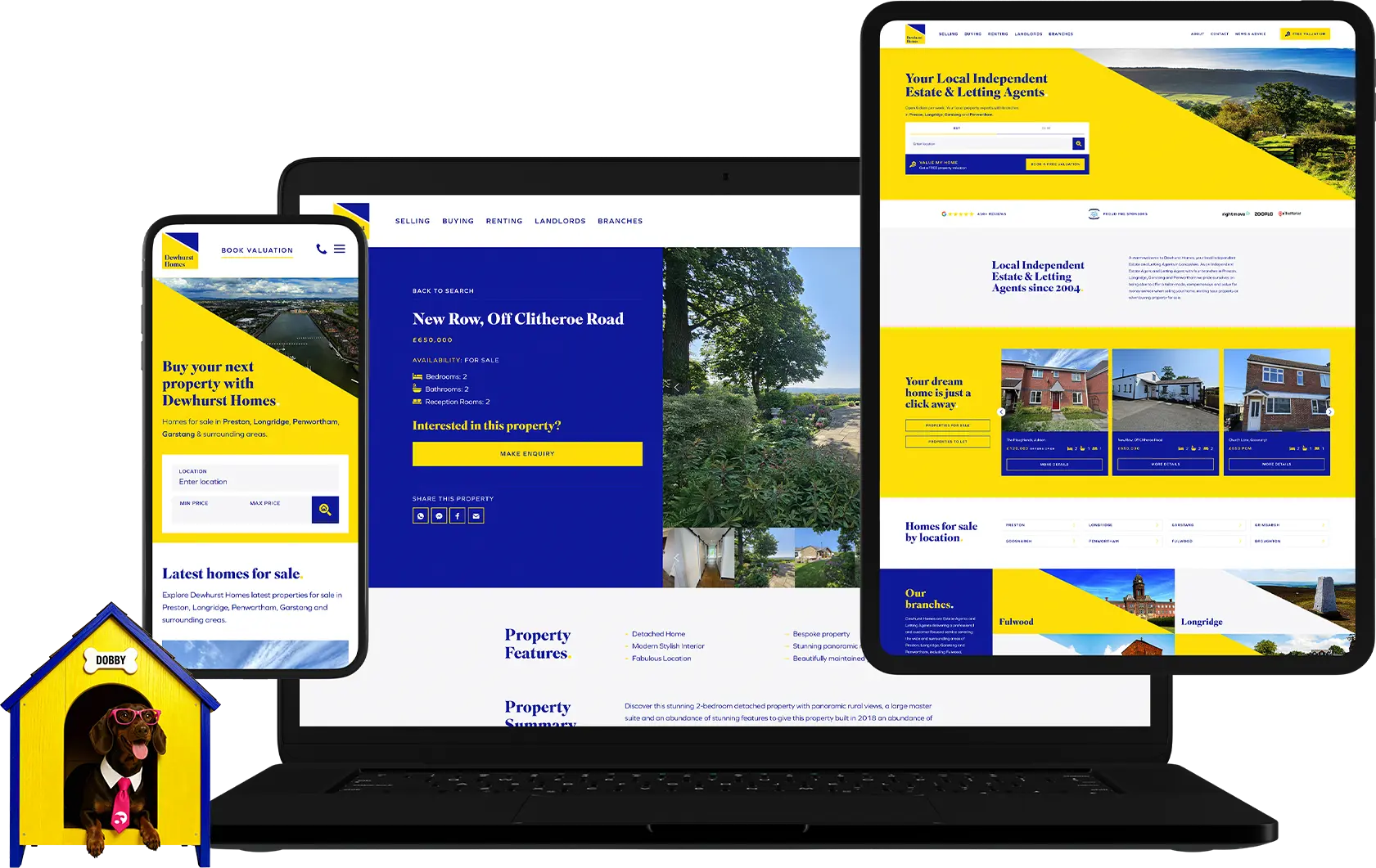 Built from the ground up to be 100% Dewhurst β not just another estate agents website. Every element follows the same brand journey, with a design thatβs instantly recognisable and a user experience that feels effortless from first click to enquiry.