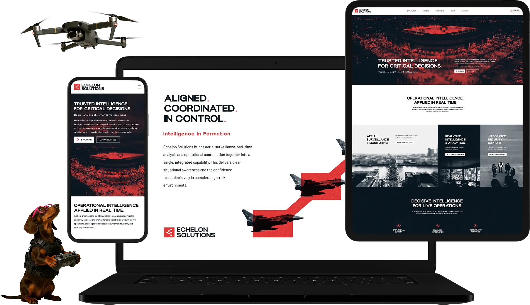 A sharp, modern identity inspired by echelon formation principles, designed to communicate clarity, coordination and trust across every touchpoint.