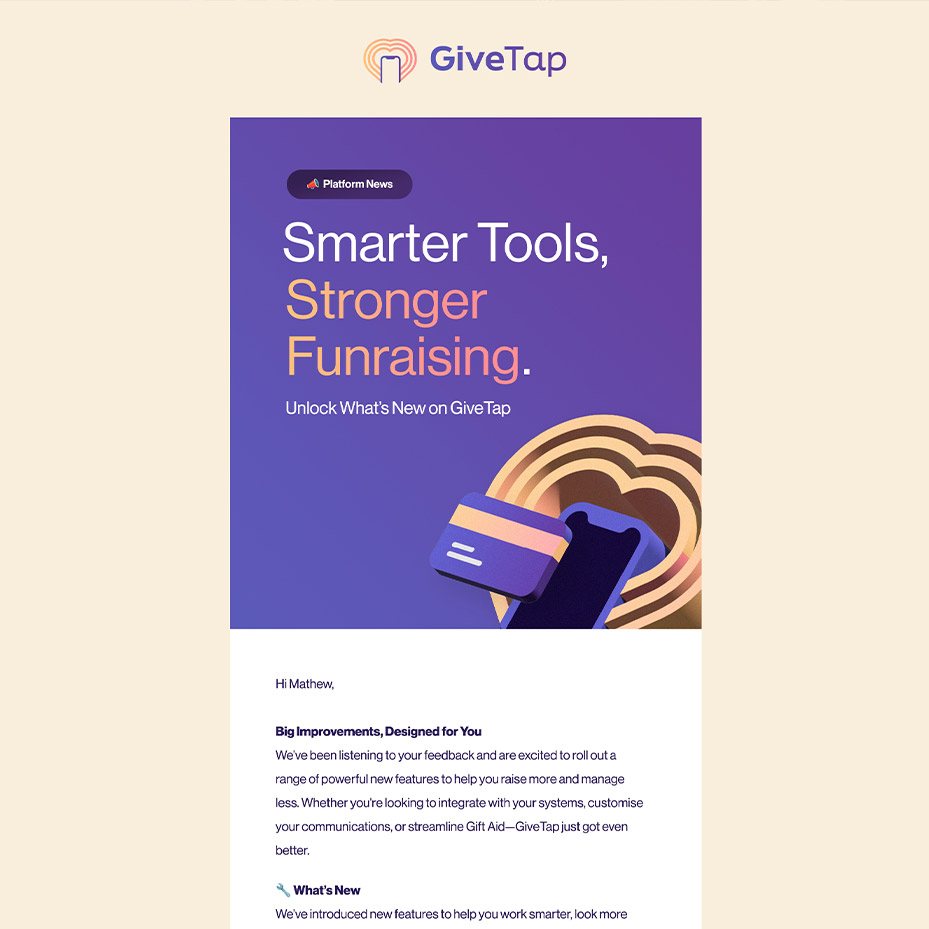 A website and digital platform built to make fundraising feel effortless, not technical. Every part of the GiveTap experience was designed to remove barriers and help people focus on what matters, supporting causes they care about.