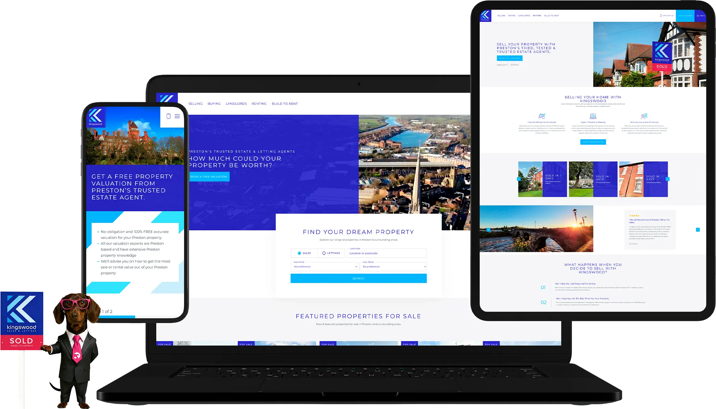 A modern website for Kingswood Sales & Lettings, delivering a clean, user-focused digital experience that makes finding, valuing and listing property simple and intuitive.