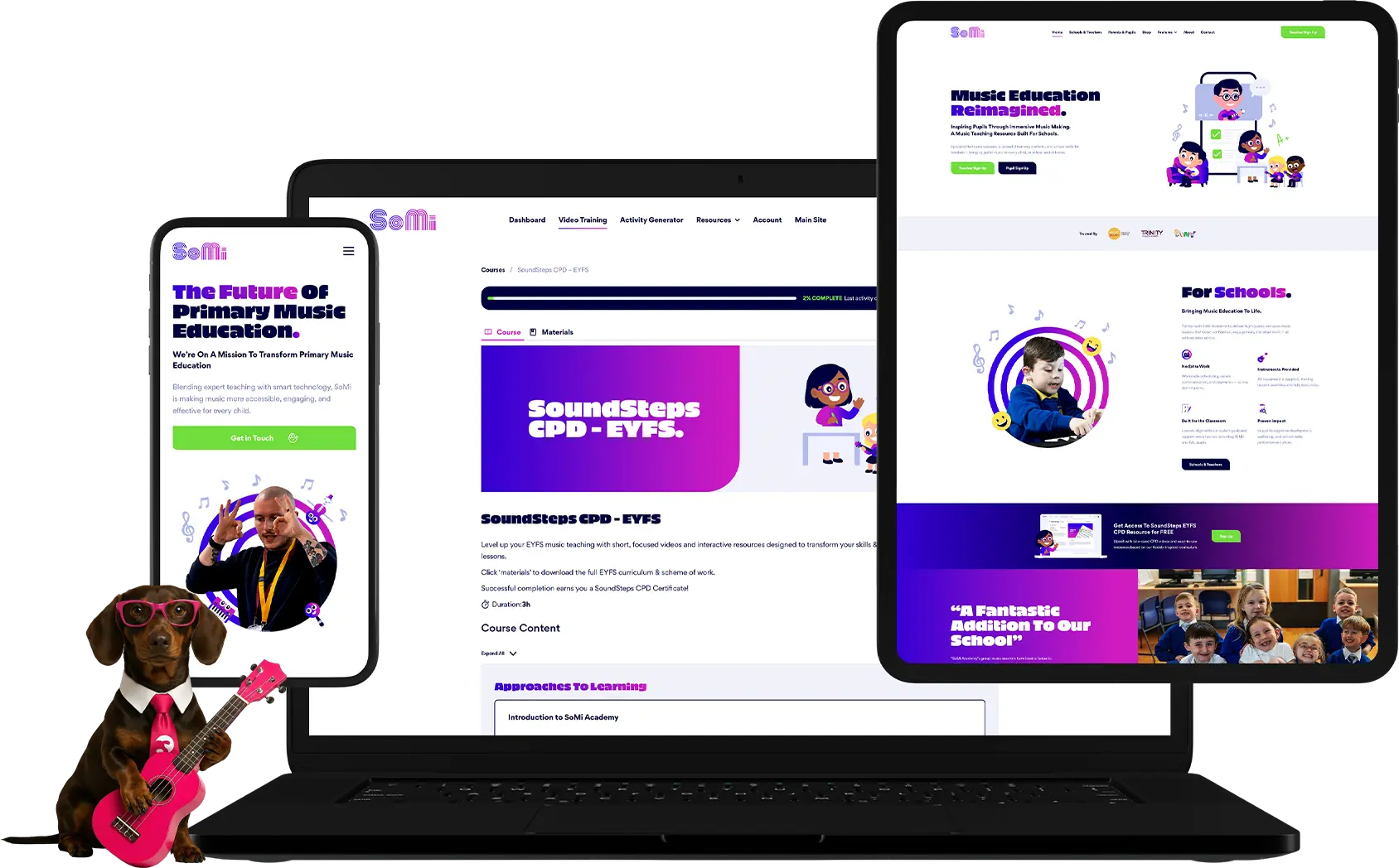 “We had a vision for SoMi, but Pink Dog pushed it further. From the bold, music-inspired design to the playful teacher hub and custom learning platform β everything feels like βusβ. Itβs fun, professional, and totally on brand. The team just got it.β