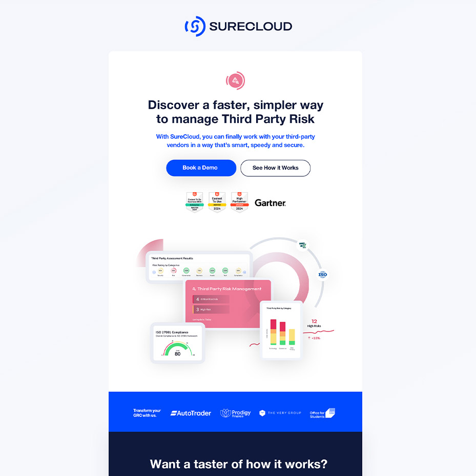 A modern website for SureCloud, created to translate complex risk and compliance software into a digital experience thatβs clear, credible and easy to digest. Intelligent, structured and reassuring without ever feeling dull.