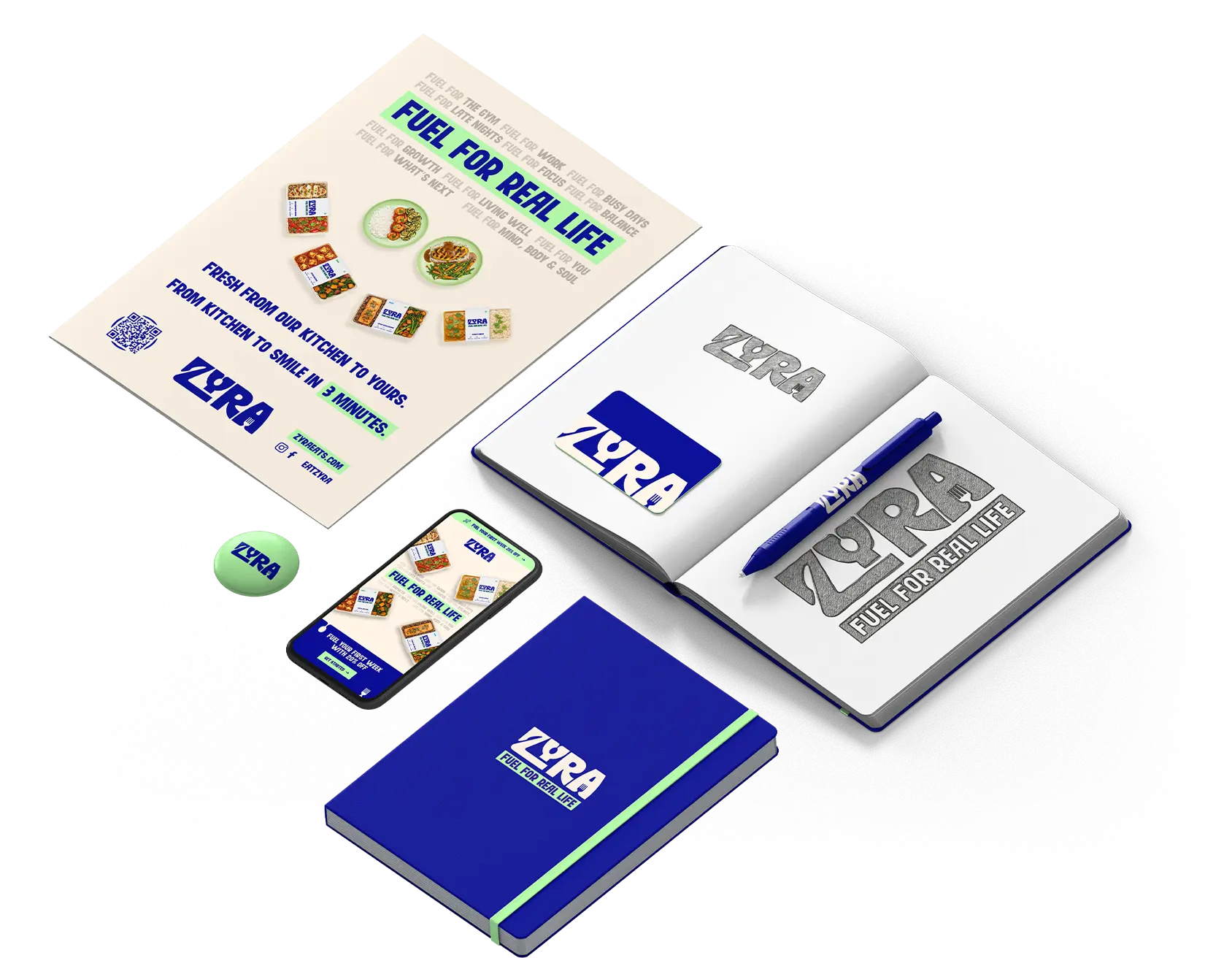 A clean, modern visual system created to communicate quality, convenience and nutrition, positioning Zyra as a contemporary food brand built around real-life eating habits.